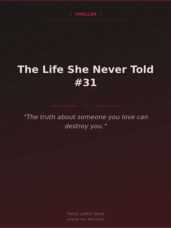 A gripping psychological thriller that peels back the layers of a seemingly ordinary life to reveal shocking secrets buried decades deep. When a moment of unexpected violence shatters the calm of everyday existence, one woman must confront the terrifying truth that the person she loves most is a complete stranger. Dark, tense, and utterly compelling — this is the kind of book you read in one breathless sitting.